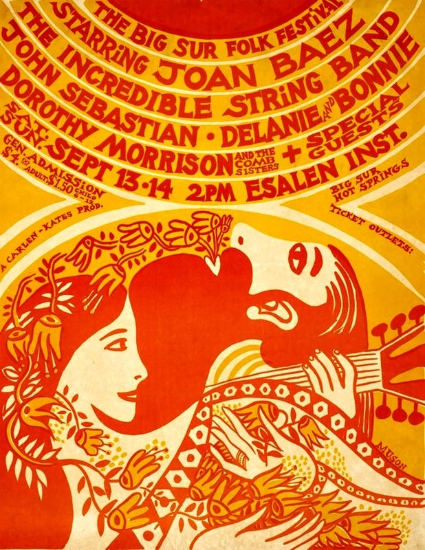 You can see snatches of the festival in the documentary of the event Celebration at Big Sur.